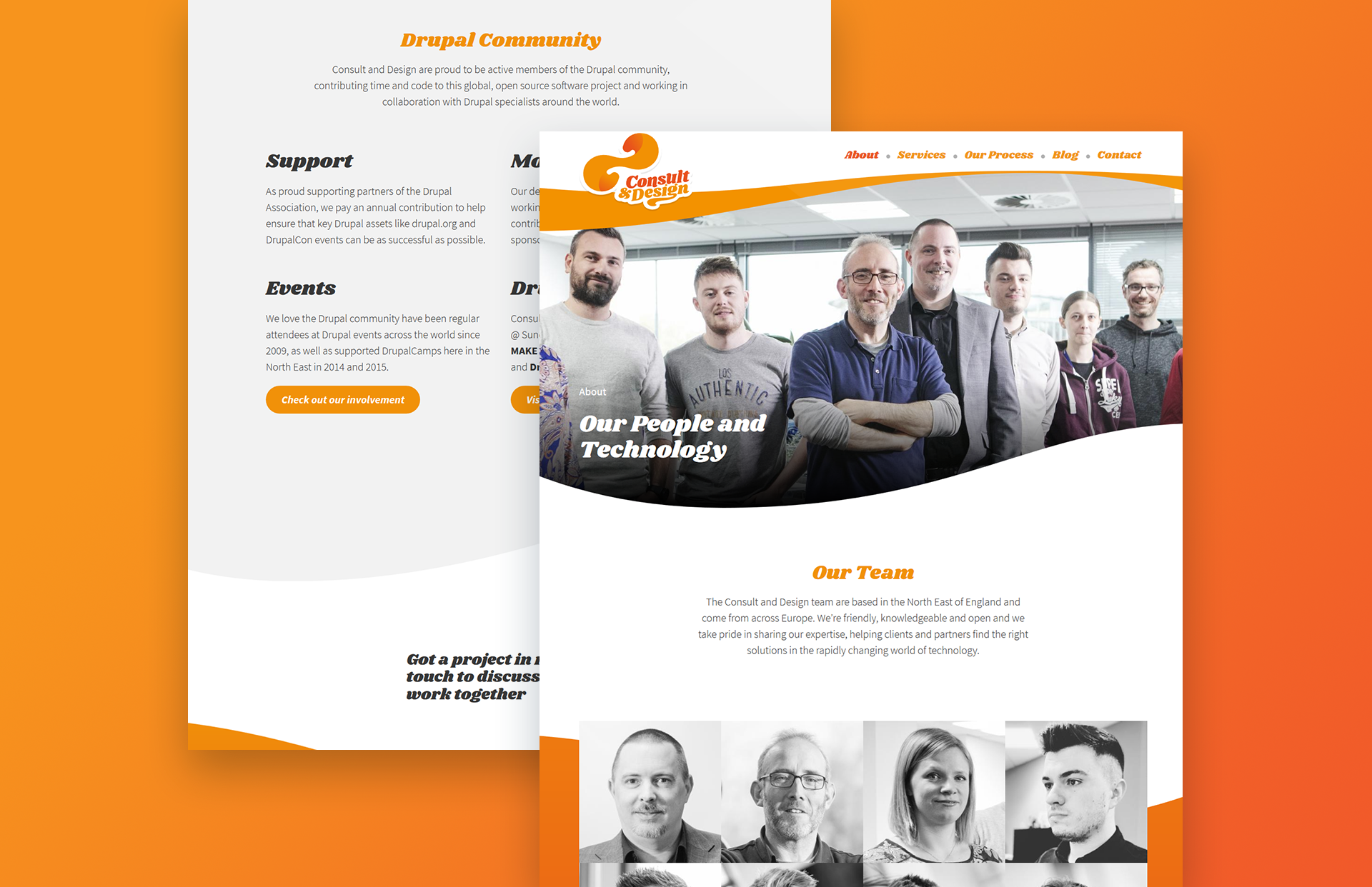 Brand development work for Drupal agency Consult and Design. Developed with the aim of "showing we’re human, we have personality, a sense of humour. We want to break the mould, we’ve evolved, we want something clear, crisp and stripped back".