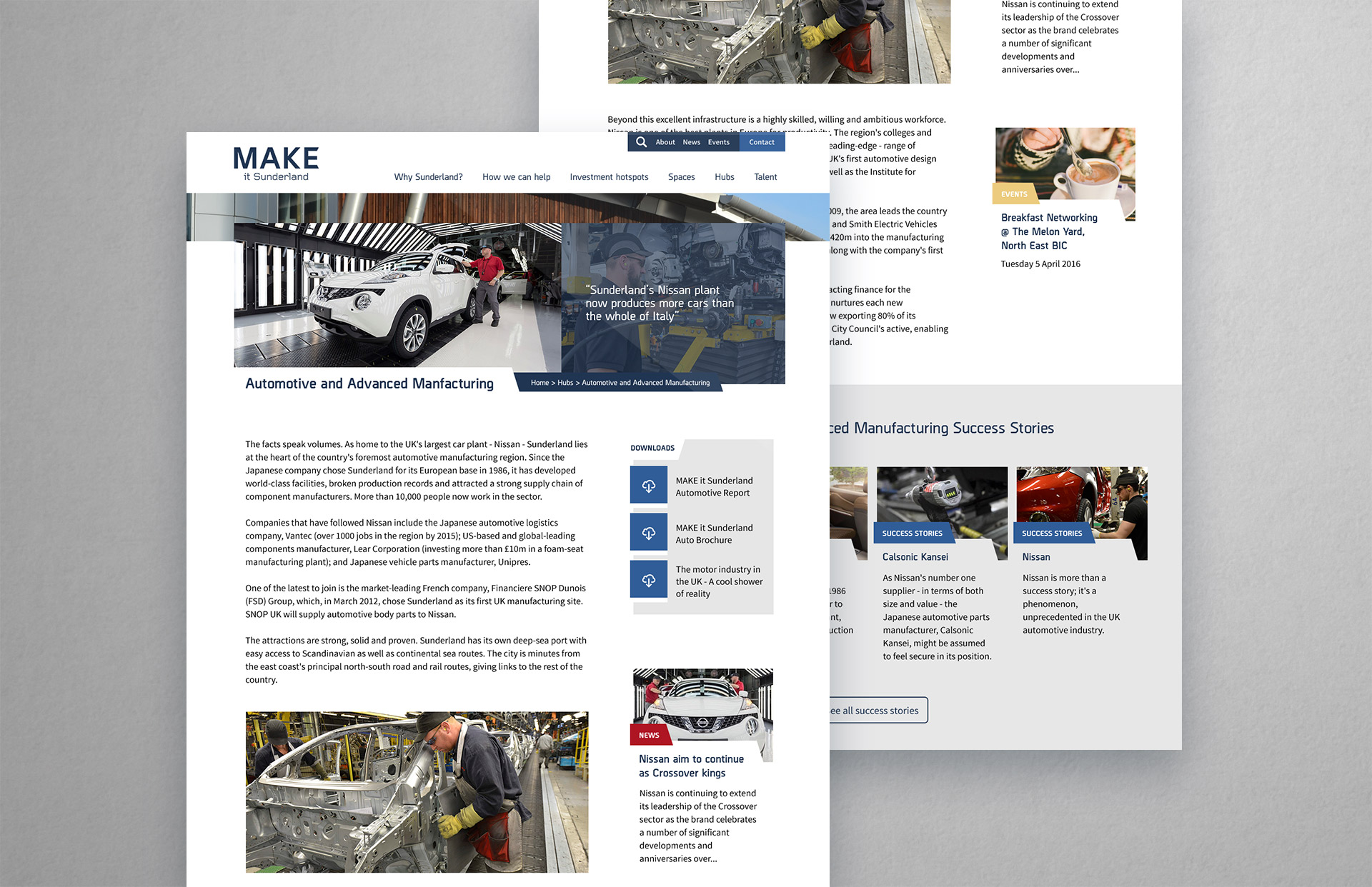 The MAKE it Sunderland website is a brochure site providing news and information to companies interested in locating to or investing in Sunderland.